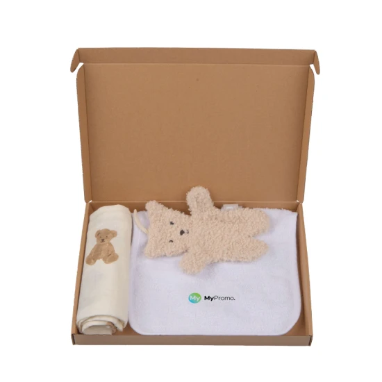 Geboortegeschenkset S in brievenbusdoos, in samenwerking met Jollein. Bevat een wit slabbetje, een Teddy Bear speendoek en een Teddy Bear hydrofieldoek. Verpakt in een bruine doos met Hello Baby label. Verrass medewerkers of relaties met een prachtig cadeau voor de geboorte van hun kind! Deze geschenkset is samengesteld in samenwerking met het traditionele Nederlandse merk Jollein, dat al meer dan 50 jaar bekend staat om zijn hoogwaardige producten voor de kleintjes.