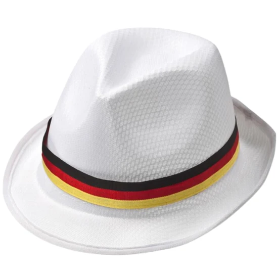 Deze stijlvolle zomerhoed is jouw perfecte metgezel op zonnige dagen, of je nu juicht bij een sportevenement, geniet van een tuinfeest of door de stad wandelt. Verkrijgbaar in klassiek wit of elegant zwart, combineert deze hoed stijl en functionaliteit in perfecte harmonie. De smalle rand voegt een vleugje ingetogen elegantie toe, terwijl de verzonken grip niet alleen het ontwerp versterkt, maar ook zorgt voor een stevige houvast. Gemaakt van licht en ademend materiaal, biedt deze hoed uitzonderlijk comfort – zelfs op de heetste zomerdagen. Een opvallend kenmerk is het polyester lint met zwarte, rode en gele strepen, dat eenvoudig met een klittenbandsluiting aan de hoed kan worden bevestigd. Geef je look een persoonlijke touch of toon je steun voor je favoriete team met dit stijlvolle accessoire.