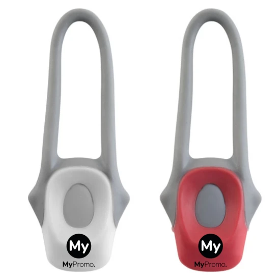 Maak jij wel eens een fietstochtje in de avonduren? Veiligheid gaat boven alles, daarom is ons fietslampje een must-have accessoire voor elke fiets. Het lampje is gemaakt van stevig plastic en is voorzien van twee heldere LEDs die zorgen voor uitstekend zicht op de weg. Het handige siliconen bandje zorgt ervoor dat het lampje makkelijk bevestigd kan worden en niet los kan schieten tijdens het fietsen. Bovendien heeft het lampje twee knipperopties, zodat je extra opvalt in het donker. Het perfecte relatiegeschenk voor een sportieve en veilige uitstraling van jouw bedrijf. Batterijen zijn inbegrepen.