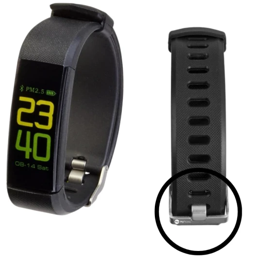 IP67 waterdichte activiteitstracker met een 0,96 inch kleuren touchscreen en thermometer. Belangrijkste functies, hartslagmeter, stappenteller, afstandmeter, calorieën, slaapmonitor, sedentaire levensstijl, Bluetooth 4.0 meldingen. Geïntegreerde thermometer die de lichaamstemperatuur meet. Compatibel met Android 4.4 of hoger/IOS 8.1 of hoger. Batterij 50 mAh. Stand-bytijd: 7 dagen. Direct opladen via USB. Geleverd in een luxe geschenkverpakking. ABS Plastic, Silicone Plastic.