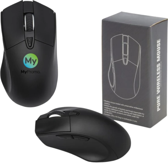 Met deze draadloze muis geef jij jouw werkplek een frisse touch. Naast het strakke design en het handige ergonomische ontwerp, is deze muis uitgerust met een heus geheim wapen: een antibacterieel additief! Dit additief remt op effectieve wijze de groei van bacteriën en schimmels en is getest volgens ISO 22196:2011. De DPI knop (800/1200/1600) zorgt voor de perfecte nauwkeurigheid van jouw aanwijzer. Zet de puntjes op de i tijdens het geven van presentaties of werk vlotjes door je documenten heen met deze eyecatcher op jouw bureau. Geleverd in een premium geschenkverpakking, is deze muis het ideale relatiegeschenk of promotieartikel voor jouw klanten en relaties. Werkt op 2 x AA batterijen (niet inbegrepen).