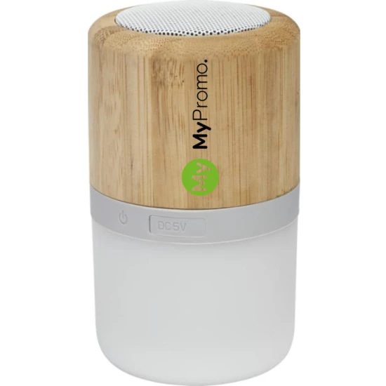 Upgrade jouw muziekervaring met onze Bluetooth luidspreker! Deze bamboe speaker met licht geeft niet alleen een geweldige geluidskwaliteit, maar laat ook het licht dansen op de maat van de muziek. Dankzij de Bluetooth® versie 5.0 koppel je de speaker gemakkelijk aan jouw apparaat tot een werkbereik van 10 meter. En met een batterijduur van wel 2 uur bij maximaal volume, kun je onafgebroken genieten van jouw favoriete muziek. Het duurzame 70% bamboe hout en 30% ABS plastic maken deze speaker niet alleen functioneel, maar ook stijlvol. Kies deze speaker als relatiegeschenk of promotieartikel en laat jouw merk opvallen in stijl.