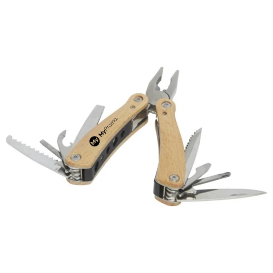 Sterke, duurzame compacte multitool gemaakt van hoogwaardig roestvrijstaal met handgrepen van beukenhout. Dit is een onmisbare tool voor elke scout, klusjesman en outdoorliefhebber. Heeft 12 functies: grote bektang, standaardtang, draadknipper, gekarteld mes, fles-/blikopener, platte schroevendraaier, middelgrote platte schroevendraaier, klein mes, kruiskopschroevendraaier, middelgroot mes en vijl en vijlreiniger. Het gebruikte beukenhout is van duurzame, milieuvriendelijke, maatschappelijk verantwoorde bronnen. De afmeting in geopende toestand is 11 x 6 cm en in gesloten toestand 7,2 x 3,4 cm. Wordt geleverd met een handleiding en is verpakt in een gerecyclede kartonnen geschenkverpakking met een afmeting van 9,5 x 5,5 x 2,5 cm. Lasergraveren wordt aanbevolen als duurzame decoratieoptie. Beech wood, Roestvrijstaal.