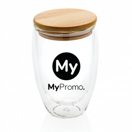 Dubbelwandige beker | Borosilicaatglas | Bamboe deksel | 350ml