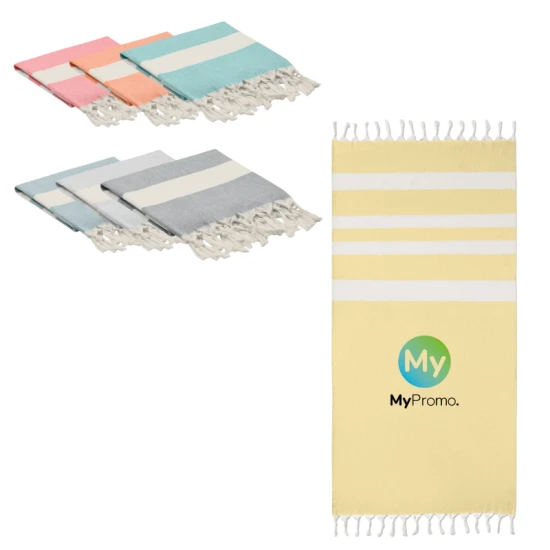 Hammam strandlaken van gerecyclede stof handdoek. gerecycled katoen (45%) / gerecycled polyester (55%). 140 gr/m².