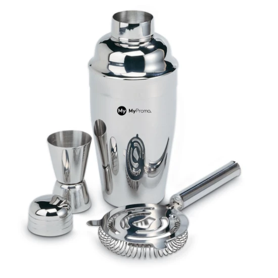 Roestvrijstalen cocktailset met shaker (500 ml), maatbekertje en zeef.