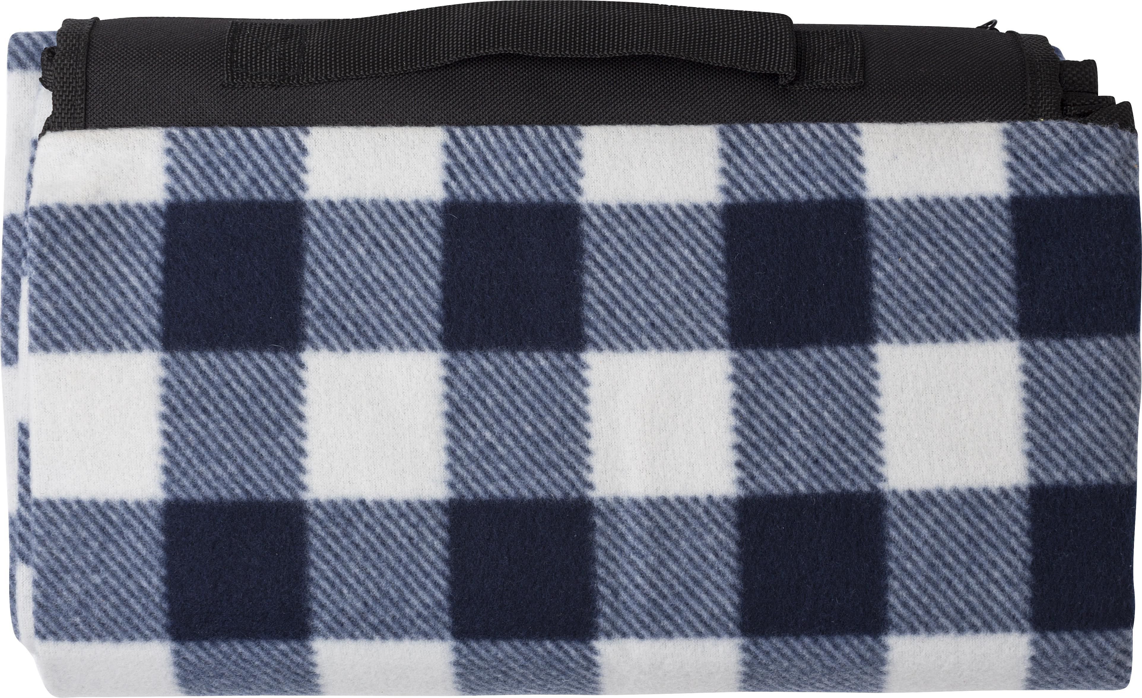 rPET opvouwbare polarfleece deken. 150 gram. PEVA-ondersteuning. Voorvak met ritssluiting. Kort handvat.