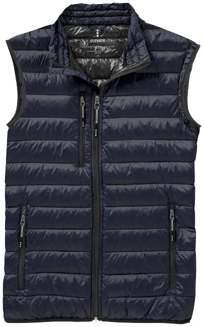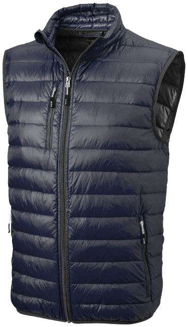 Met de lichtgewicht bodywarmer loop jij er altijd stijlvol bij. De geperste stof is niet alleen downproof, maar ook nog eens waterafstotend door de speciale afwerking van 100% nylon. Ideaal voor mannen die comfort, kwaliteit en een fashionable uitstraling belangrijk vinden. Door de dons isolatie blijf je lekker warm, terwijl de stormflap aan de binnenzijde met kinbescherming zorgt voor extra bescherming tegen de wind. Zo hoef jij je geen zorgen te maken over het weer tijdens een lange wandeling. De borstzak en steekzakken met ritssluiting maken het geheel helemaal af. Weggeven als relatiegeschenk of promotieartikel? Jouw klanten zullen er zeker blij mee zijn!