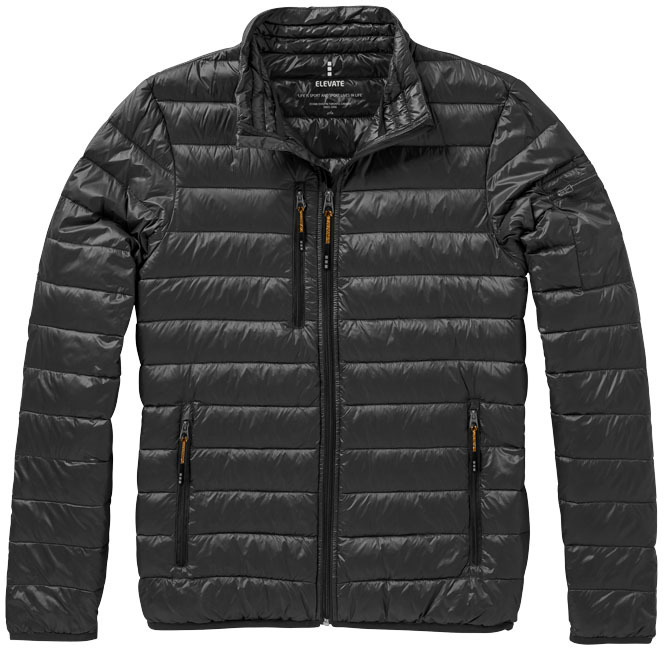 Het lichtgewicht jack van nylon met dons isolatie is dé jas voor heren die houden van een actieve levensstijl. De downproof stof zorgt ervoor dat je warm blijft, terwijl het toch lichtgewicht is. De stormflap aan de binnenzijde met kinbescherming zorgt ervoor dat je nek warm blijft, zelfs bij slechte weersomstandigheden. De zakken met rits en de borstzak met ritssluiting bieden voldoende opbergruimte voor jouw waardevolle spullen. Door de elastische binding sluit de jas perfect aan op jouw lichaam en de vrijliggende ritssluiting met contrastband zorgt voor een trendy look. Jouw gasten of klanten zullen blij zijn met dit functionele geschenk en zullen het zeker waarderen.