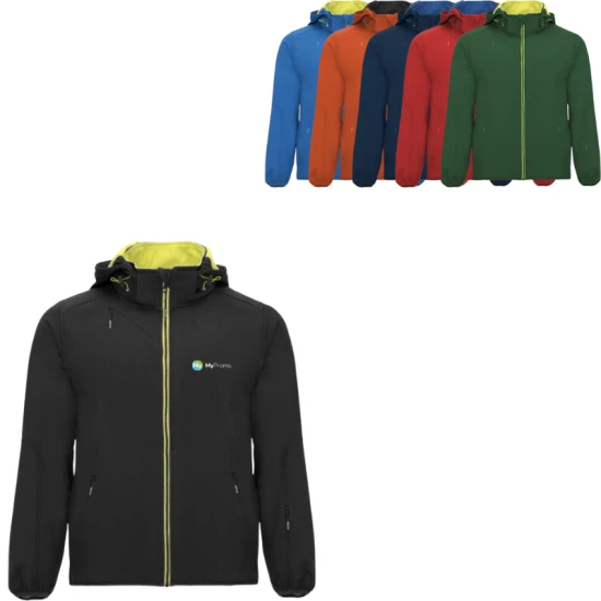 Tweelaags softshell in sportieve pasvorm. Contrasterende centrale rits met kinbeschermer en trekker. Binnenvoering van contrasterende microfleecestof. Buitenzak op de rechterborst met onzichtbare rits in diagonale vorm. Twee zijzakken met onzichtbare rits. Zak op de linkermouw. Bijpassende elastische bies in manchetten en zoom. Opvouwbare capuchon met contrasterende micropolaire voering. Verwijderbaar etiket. Waterbestendig. Winddicht. Het mannelijke model is 185 cm en draagt maat M en het vrouwelijke model is 174 cm en draagt maat S. Geweven van 92% Polyester en 8% Elastane, 300 g/m2, Lining, Micro fleece van 100% Polyester.