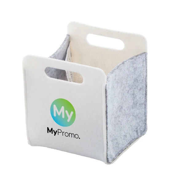 Deze milieuvriendelijke bureau-organizer, gemaakt van duurzaam rPET, biedt stijl en duurzaamheid voor elke werkplek. Met handige gestanste handgrepen is hij gemakkelijk te verplaatsen en ideaal voor het organiseren van kantoorartikelen, documenten en kleine benodigdheden. Met full-color personalisatie-opties is hij perfect om het logo of ontwerp van je merk te laten zien en een levendig accent aan je bureau toe te voegen.