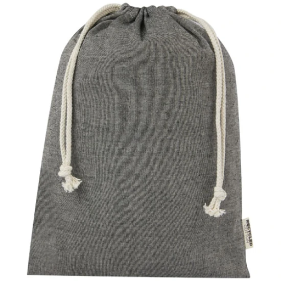 Geschenktas van GRS-gecertificeerd gerecycled katoen met katoenen trekkoordsluiting. Ideaal voor het geven of opbergen van items. Afmetingen: 30 x 42 cm. Recycled cotton.