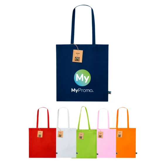 Deze Fairtrade-gecertificeerde katoenen tas is de duurzame en stijlvolle keuze voor dagelijks gebruik, evenementen en promotiecampagnes. Gemaakt van stevig katoen van 180 g/m² met een nette gestikte afwerking en lange hengsels van 70 cm, die comfortabel in de hand of over de schouder gedragen kunnen worden. Met een draagvermogen tot 6 kg is de tas perfect voor boodschappen, beurzen of als bedrukte giveaway. Eerlijk geproduceerd en milieuvriendelijk – deze tas promoot niet alleen jouw merk, maar ondersteunt ook eerlijke arbeidsomstandigheden. Een verantwoord en praktisch relatiegeschenk waar iedereen blij van wordt.