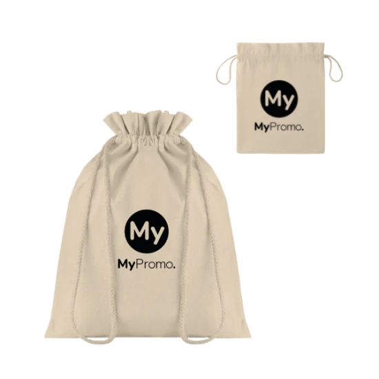 Medium geschenk trekkoordzakje van biologisch katoen. Afmeting ca. 25 x 32 cm. 105 gr/m².