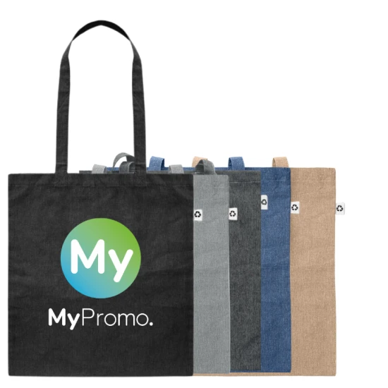 Draagtas | 140g/m² | Gerecycled katoen | Lange hengsels | Denim look