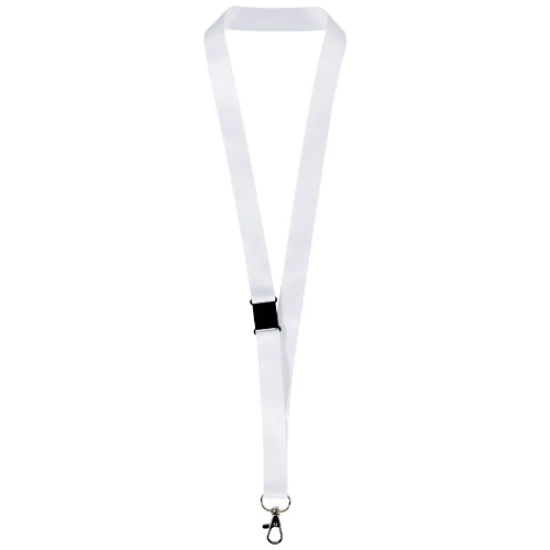 Een RPET-sublimatielanyard met full colour ontwerp, RPET-tape, een sleutelring en een gesp met breeksluiting die verstikkingsgevaar voorkomt. Kan een naambadge, ID-kaart of sleutels bevatten. Verkrijgbaar in 4 verschillende breedtes: 10, 15, 20 en 25 mm. Gerecycleerd PET Polyester.