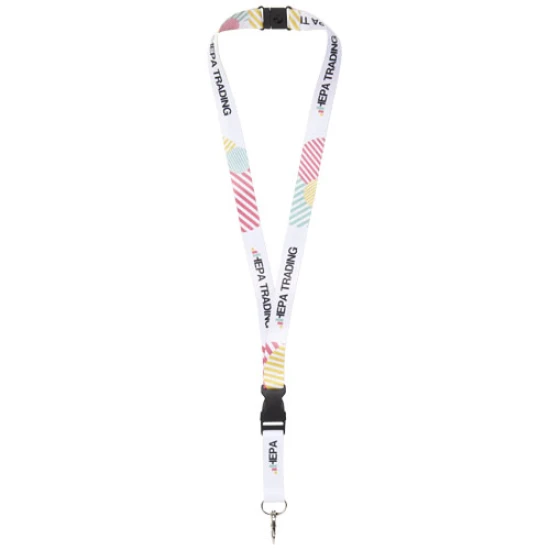 Jij gaat voor de totale look en wilt dat je bedrijf tot in detail klopt. Met het Sublimatiekoord geef je iedereen een trendy keycord in de huisstijl van jouw organisatie. Dit lanyard heeft aan beide zijden een full colour decoratie en biedt ruimte aan een naambadge, ID kaart of sleutels. Dankzij de metalen haak, kunststof gesp en veiligheidssluiting hoef je je geen zorgen te maken over verstikkingsgevaar. Geef een stijlvol relatiegeschenk of laat de keycords bedrukken als promotieartikel voor jouw bedrijf.