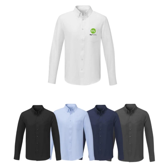 Interne gepersonaliseerde opties voor branding. Uitneembaar label voor draagcomfort. Borstzak. Kraag met knoopsluiting. Verstelbare manchet met enkele plooi. Bijpassend gekleurde knopen. Met boxplooi midden achter. Oxford van 55% Katoen en 45% Polyester, 130 g/m2.