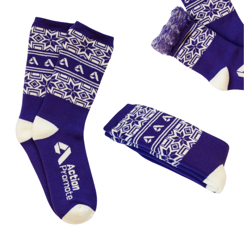 Geniet van ultiem comfort met de fluffy sokken van Kingly™ – zacht, warm en milieuvriendelijk. Gemaakt van dikgebreide polyester met Lucra stretch, houden ze de voeten warm, zelfs op de koudste dagen. Elk paar is fully customizable en verpakt in een EN-gecertificeerde composteerbare zak. We voegen ook een full-colour bedrukt gerecycled soklabel toe, perfect voor winkelpresentatie of zakelijke geschenken.
