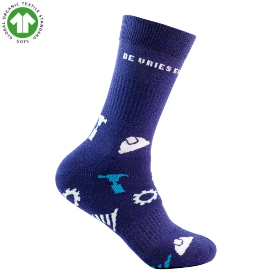 Onze op maat gemaakte werksokken bieden uitzonderlijk comfort en duurzaamheid met 80% gekamd katoen, verstevigde hiel en teen, en een badstof voering om blaren te voorkomen. Kies uit 160 op voorraad zijnde garenkleuren voor uw ontwerp en geniet van een veilige pasvorm met ribbels die het wegglijden van de voet verminderen. Deze GOTS-gecertificeerde, milieuvriendelijke sokken zijn Oeko-Tex gecertificeerd en worden in Europa vervaardigd volgens strikte ISO-kwaliteitsnormen. Verkrijgbaar in één maat voor mannen en vrouwen, met aangepaste maten op aanvraag, wordt elk paar verpakt met een gerecycled soklabel en een zelfsluitende zak.