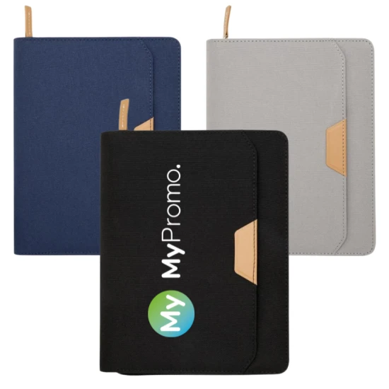De Nomumi A5 portfolio met afgeronde hoeken is een handig kantooraccessoire van gerecycled plastic. Met 64 crèmekleurige 80 g/m2 gelinieerde vellen, een ritssluiting, pennenloop en een accordeonvak. Gerecylced PET plastic, FSC gecertificeerd papier.