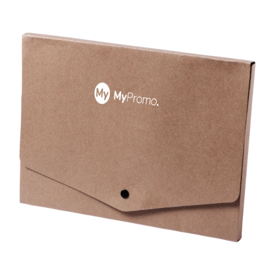 Verzamel al jouw belangrijke documenten en bewaar ze veilig in deze milieuvriendelijke documentenmap van gerecycled papier. Deze duurzame map beschermt jouw papieren tegen vouwen en kreukelen, waardoor je professionele uitstraling behoudt. De drukknoop sluiting zorgt ervoor dat je documenten veilig en netjes opgeborgen blijven. Daarnaast is het een geweldig promotieartikel om jouw bedrijf en merk te laten zien. Personaliseer deze map met jouw logo en verspreid hem onder jouw klanten en personeel. Door het handige formaat en de stijlvolle uitstraling is dit het perfecte relatiegeschenk voor in elke kantooromgeving.