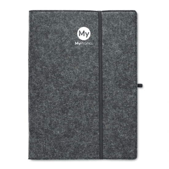 A4 Portfolio | rPET vilt | Notitieblok met 100 gelinieerde bladen | Elastische penhouder