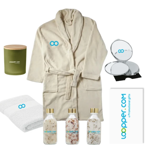 Ontdek het Premium Wellness Pack van Loopper – een zorgvuldig samengestelde selectie verwenproducten die comfort, ontspanning en merkzichtbaarheid combineren. Ontworpen om de thuis-spa-ervaring naar een hoger niveau te tillen, is deze collectie ideaal voor klanten, medewerkers of iedereen die zijn dagelijkse routine wil verrijken met een vleugje luxe, terwijl uw merk centraal blijft staan.