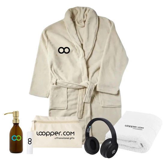 - Badjas: Een perfecte mix van comfort en stijl, het ideale cadeau om je klanten te verwennen en gewaardeerd te laten voelen. Maten van L-XL.