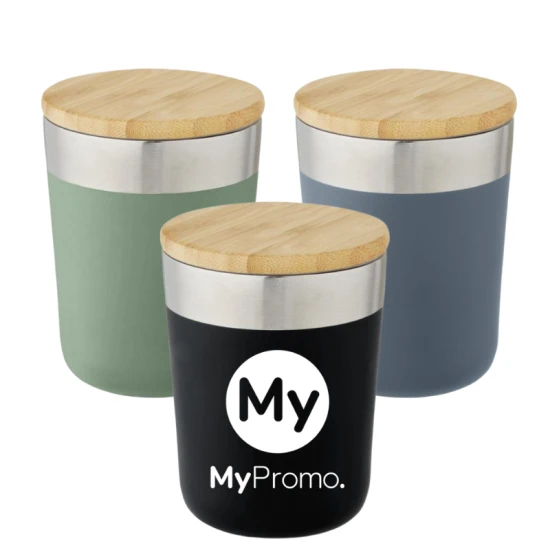 Deze thermobeker is perfect voor iedereen die onderweg geniet van een warme of koude drank. De beker is gemaakt van dubbelwandig roestvrijstaal met koperen vacuüm isolatie, wat betekent dat jouw drankje meerdere uren op temperatuur blijft. Het moderne ontwerp met een deksel van biologisch bamboe zorgt voor een duurzame uitstraling. Niet alleen is deze beker BPA-vrij en getest op veiligheid, het past ook nog eens onder de meeste koffiemachines! Geef deze milieuvriendelijke beker weg als relatiegeschenk of promotieartikel en laat jouw klanten, medewerkers of zakenpartners zien dat je geeft om duurzaamheid. Geleverd in een gerecyclede kartonnen geschenkverpakking. Voor een afdruk die bestand is tegen vaatwasmachine wasbeurten, raden wij aan te kiezen voor een keramische of sublimatiedruk.