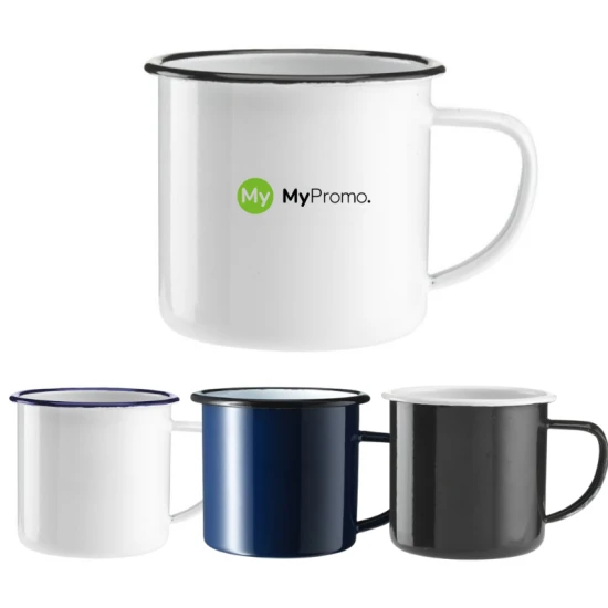 Enamelled mug. A design in popular retro style. To accentuate the retro look, the mug has imperfections. Contents 350 ml.