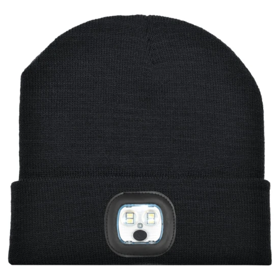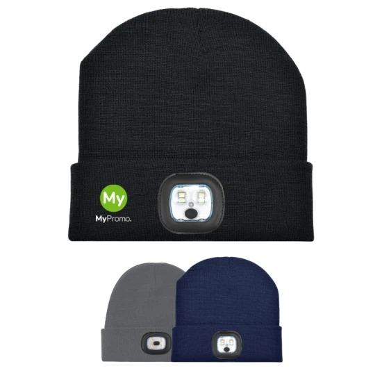 Val op in het donker! Met deze 100% acryl muts, inclusief een LED-lamp aan de voorkant, ben je goed zichtbaar in de donkere dagen. Personaliseer de muts met je eigen ontwerp door een label toe te voegen. Dit coole product is een geweldig promotiemiddel om je bedrijf te laten opvallen. De lamp is op te laden via een USB-poort en kan uit de muts worden gehaald om gewassen te worden.