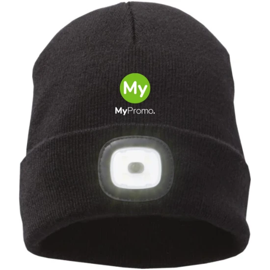 Warm en zichtbaar de winter in met onze Mighty Beanie met LED verlichting! Deze dubbellaags beanie houdt je hoofd lekker warm tijdens koude dagen, dankzij de 1x1 Rib knit van 100% Acryl en vouwmanchet. Perfecte pasvorm? Check! Dankzij de crown darts. Maar dat is nog niet alles. De afneembare en oplaadbare koplamp zorgt voor extra zichtbaarheid in het donker, tijdens het hardlopen, fietsen of wandelen. Geef deze beanie cadeau aan klanten, relaties of medewerkers en laat hen ook stralen in het donker. Met een gepersonaliseerde opdruk van jouw bedrijfslogo, is deze beanie een uniek en functioneel promotieartikel voor het najaar.