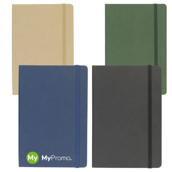 A5-notitieboek met een kaft van FSC®-gecertificeerd karton. Het notitieboek heeft ongeveer 80 vellen/160 pagina's crèmegekleurd, gelinieerd FSC Mix-gecertificeerd papier (70 g/m²). Met gebonden rug en handige elastische sluiting.