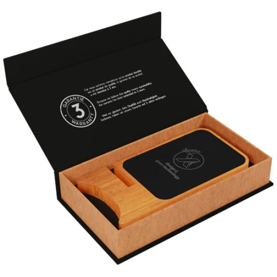 Met deze 10W draadloze oplader van rubber en bamboe met antibacteriële behandeling en oplichtend logo geef je jouw merk niet alleen een boost, maar draag je ook nog eens bij aan een duurzamere wereld. Deze oplader is goed voor het milieu en voor een gezonde werkplek omdat de antibacteriële behandeling bacteriën op afstand houdt. Dankzij het oplichtende logo valt deze gadget extra op en zorgt het voor een unieke uitstraling. Geleverd in een zwarte geschenkverpakking gemaakt van gerecycled kraftpapier inclusief een gerecyclede PET plastic kabel. Een perfect relatiegeschenk of promotieartikel dat jouw klanten en zakenrelaties gegarandeerd zullen waarderen!
