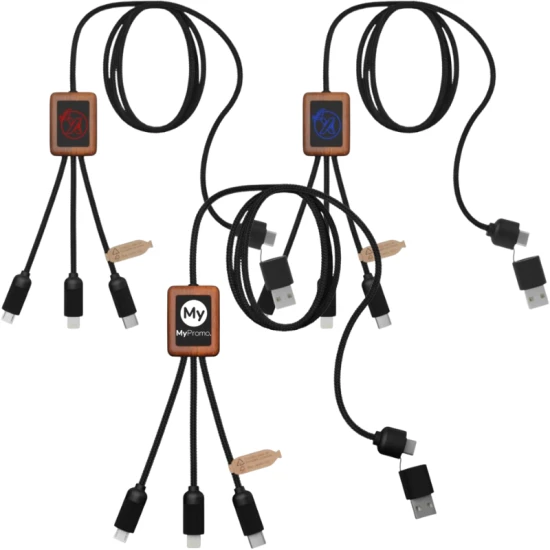 5-in-1 oplaadkabel | rPET & hout | verlicht logo