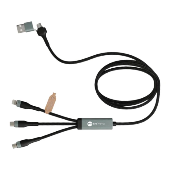 5-in-1 oplaadkabel | rPET | 100W | Compatibel met Type-C, Micro USB, Lightning