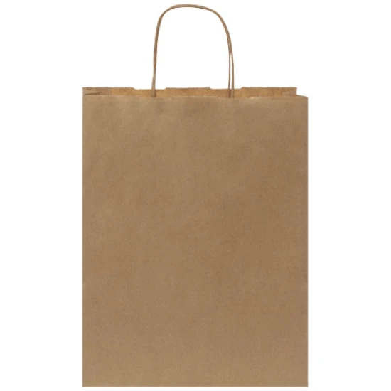 Tas in maat M van kraftpapier met gedraaide handgrepen. Gemaakt in Europa van 80 g/m2 verantwoord verkregen papier. Het is een duurzame en slijtvaste verpakkingsoplossing met voldoende ruimte voor een verscheidenheid aan items. Het natuurlijke en rustieke uiterlijk van het kraftpapier geeft elke gelegenheid een elegant tintje. Deze tas is perfect voor winkelen, cadeaus of evenementen en is een eco-vriendelijk alternatief voor plastic tassen. Omarm functionaliteit en verantwoordelijkheid voor het milieu met onze tassen van kraftpapier. Afmetingen: 25 x 11 x 32 cm. Recycled kraft paper.