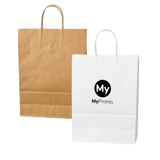 Upgrade je verpakking met deze milieuvriendelijke kraftpapieren tas! Met een formaat van 25x11x32cm is hij perfect voor kleine cadeaus, retailproducten of take-away items. Gemaakt van stevig kraftpapier, is deze tas zowel sterk als biologisch afbreekbaar. De gedraaide handvatten zorgen voor een comfortabele grip en geven een stijlvolle uitstraling. Ideaal voor bedrijven die op zoek zijn naar een duurzame en professionele verpakkingsoplossing. Personaliseer hem met je logo voor een unieke merkbeleving!