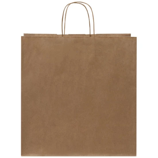 Tas in maat XL van kraftpapier met gedraaide handgrepen. Gemaakt in Europa van 80 g/m2 verantwoord verkregen papier. Het is een duurzame en slijtvaste verpakkingsoplossing met voldoende ruimte voor een verscheidenheid aan items. Het natuurlijke en rustieke uiterlijk van het kraftpapier geeft elke gelegenheid een elegant tintje. Deze tas is perfect voor winkelen, cadeaus of evenementen en is een eco-vriendelijk alternatief voor plastic tassen. Omarm functionaliteit en verantwoordelijkheid voor het milieu met onze tassen van kraftpapier. Afmetingen: 34 x 20 x 35 cm. Recycled kraft paper.