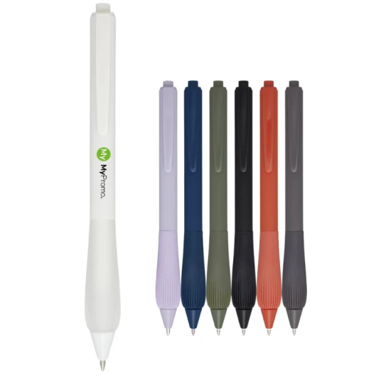 Balpen van gerecycled plastic met een rubberen houder en grip van TPR. Inktkleur: zwart. Schrijflengte: 1000 meter. Stiftmaat: 1,0 mm. Gerecylced ABS plastic.