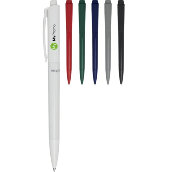 Balpen met de houder en clip van gerecycled plastic en de punt van roestvrij staal. Inktkleur: zwart. Schrijflengte: 3000 meter. Stiftmaat: 1,00 mm. Gemaakt in Duitsland. Recycled Plastic.