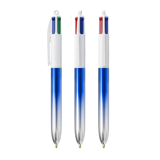 Ontdek onze nieuwe BIC® 4 Kleuren® Bicolor! Het unieke glanzende metallic effect combineert twee schitterende kleuren op de huls, voor de meest creatieve ontwerpen en een metallic look met een artistiek tintje. Onze BIC® 4 Kleuren® balpennen hebben een gemiddelde schrijflengte van 8.000m (SGS-tests - gemiddelde schrijflengte voor blauwe, zwarte, rode en groene cartridges). Onze iconische BIC® 4 Kleuren® wordt duurzamer, nu met 13% minder plastic in het bovenste deel! Tussen juni 2023 en juni 2024 houd er rekening mee dat je je bestelling kunt ontvangen met de standaard clip of de nieuwe clip die minder plastic bevat.