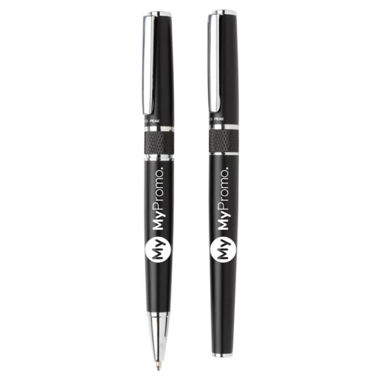 Maak van schrijven een stijlvolle ervaring met de Swiss Peak deluxe pen set. Deze set bestaat uit een balpen en rollerbal die beiden zijn voorzien van blauwe inkt en een ultravloeiende Duitse inktvulling met t/c bal. Hierdoor schrijf je met gemak 1200 meter lang zonder onderbreking. De steel en brass materialen geven de pennen een luxe uitstraling en maken ze duurzaam. Geef deze set als relatiegeschenk of promotieartikel en zorg ervoor dat de ontvanger zich bijzonder voelt. De set wordt geleverd in een mooie geschenkdoos met jouw bedrijfslogo erop, wat de set nog meer waarde geeft. Kortom, een perfect cadeau voor elke gelegenheid!
