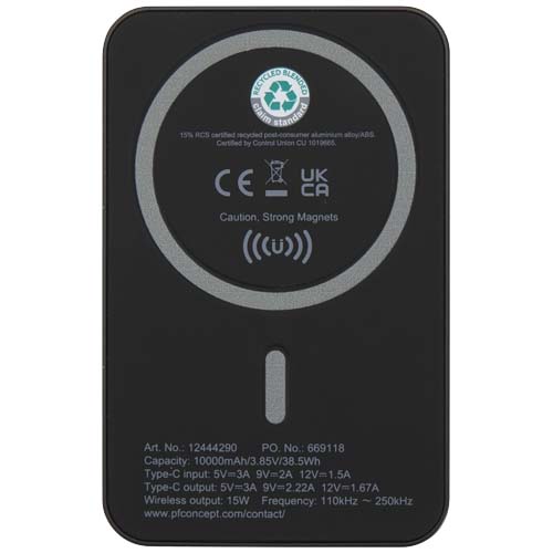 Magnetische draadloze powerbank | Gerecycled ABS plastic | 10.000 mAh | zwart 6461532
