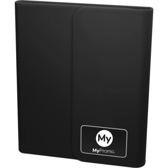 Met dit A5-notitieboekportfolio sla jij twee vliegen in één klap. Het is namelijk niet alleen een stijlvol notitieboek, maar komt ook met een geïntegreerde 4000 mAh powerbank voor draadloos opladen van jouw smartphone of ander apparaat. En hoe leuk is het dat het logo op de magnetische sluiting aan de voorzijde oplicht? Dit notitieboek is gemaakt van PU kunststof met microvezel afwerking, terwijl het notitieboek zelf 30 bladen bevat van duurzame en maatschappelijk verantwoorde bronnen. Bij de portfolio wordt een 3-in-1 oplaadkabel geleverd (type C, micro USB en iPhone), gemaakt van gerecycled PET. Het perfecte relatiegeschenk of promotieartikel in een chique zwarte geschenkverpakking. En wist je dat het productieproces gebruik maakt van gerecycled PET plastic en papier? Een duurzame keuze dus! En als klap op de vuurpijl: inclusief drie jaar garantie.