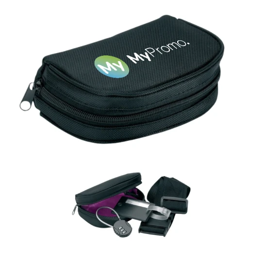 Reisset bestaande uit een bagagelabel, kofferriem en kofferslotje. Verpakt in een 1680D polyester hoes.