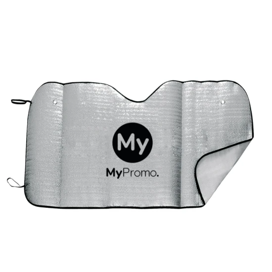 Dit zonnescherm van aluminium is het perfecte relatiegeschenk voor de zomer. De gemetalliseerde afwerking aan één zijde zorgt ervoor dat het zonlicht wordt gereflecteerd, waardoor jij en jouw vrienden en familie heerlijk koel kunnen blijven. De zwarte, polyester biezen geven het zonnescherm een stijlvolle uitstraling. Met een afmeting van 130x70cm en elastische bandjes met metalen verstevigingsringen is het zonnescherm geschikt voor bijna ieder autoraam. De schuimlaag aan de achterkant houdt het zonnescherm stevig op zijn plaats. Ook leuk als promotieartikel voor jouw bedrijf gedurende de warme zomermaanden.