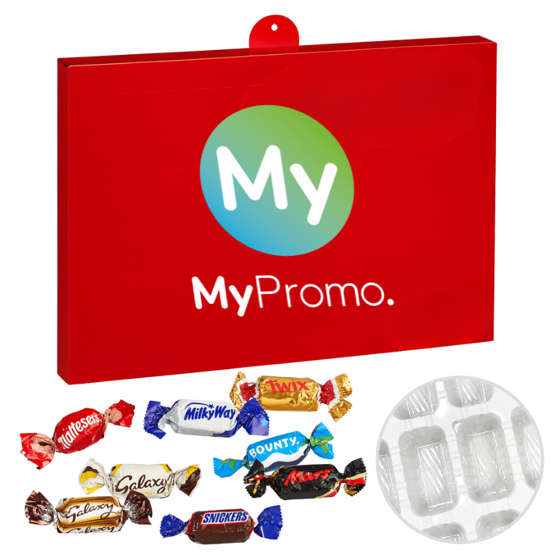 Premium adventskalender | Karton | 34 x 23,5 x 3,3 cm | Gevuld met Celebrations chocolade | Full colour bedrukking | Celebrations Personaliseerbaar 6466360
