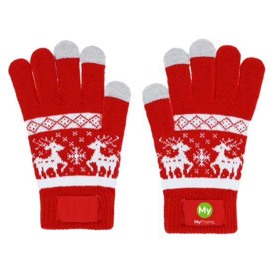 Warme handschoenen met kerstpatroon. Touch-functie op middelvinger, wijsvinger en duim. Gemaakt van zacht acryl, met speciaal label voor branding. Een origineel cadeau om stijlvol te dragen met Kerstmis.